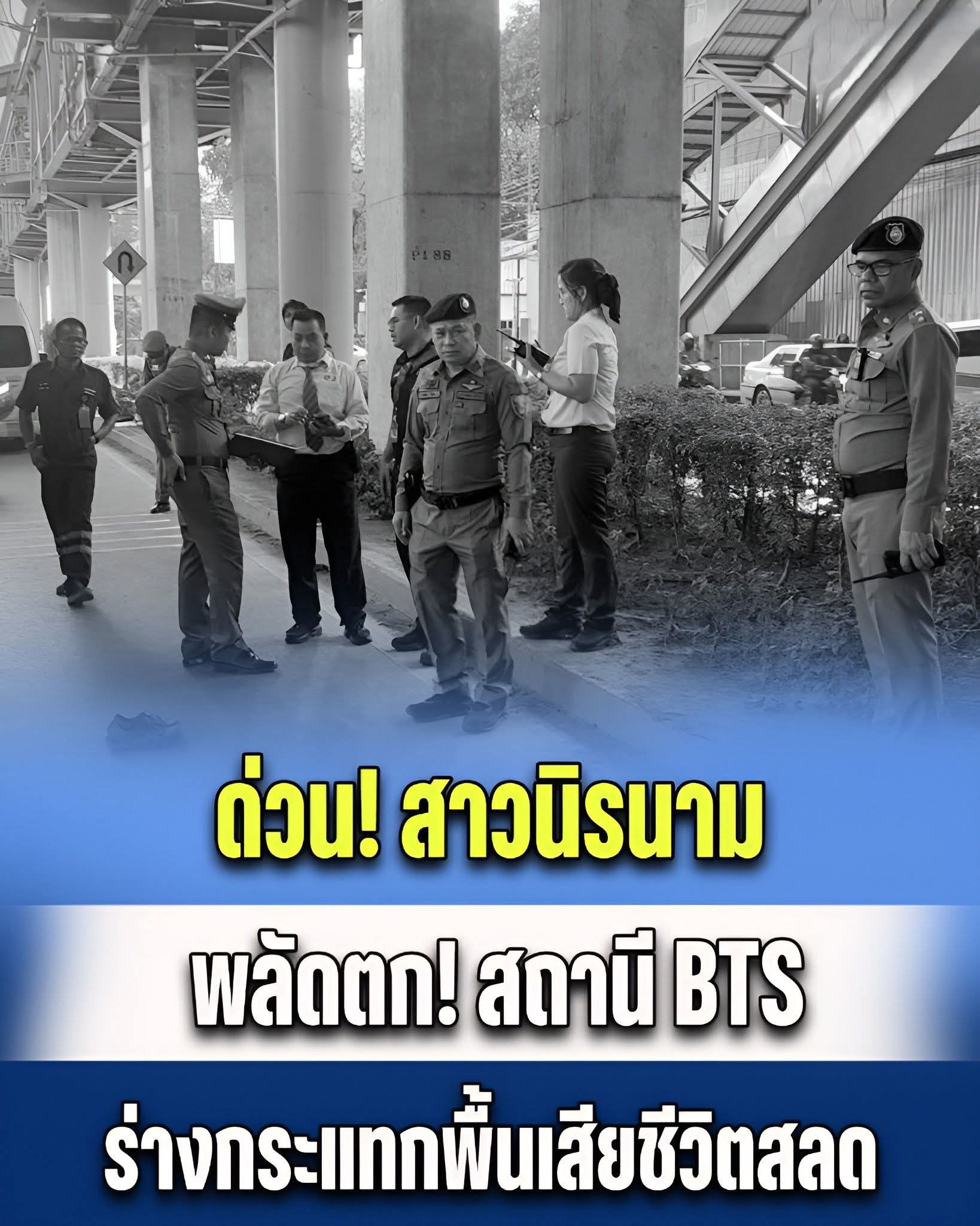 เมื่อวันที่ 11 เมษายน 2569 เจ้าหน้าที่ตำรวจ สน.บางเขน รับแจ้งเหตุมีบุคคลพลัดตกจากที่สูงเสียชีวิต บริเวณใต้สถานีรถไฟฟ้าบีทีเอสกรมป่าไม้ ถนนพหลโยธินฝั่งขาเข้า แขวงลาดยาว เขตจตุจักร กรุงเทพฯ จึงรุดไปตรวจสอบ พร้อมด้วย เจ้าหน้าที่จราจร สน.บางเขน, แพทย์นิติเวชโรงพยาบาลภูมิพล และอาสาสมัครมูลนิธิร่วมกตัญญู