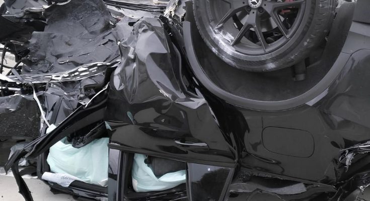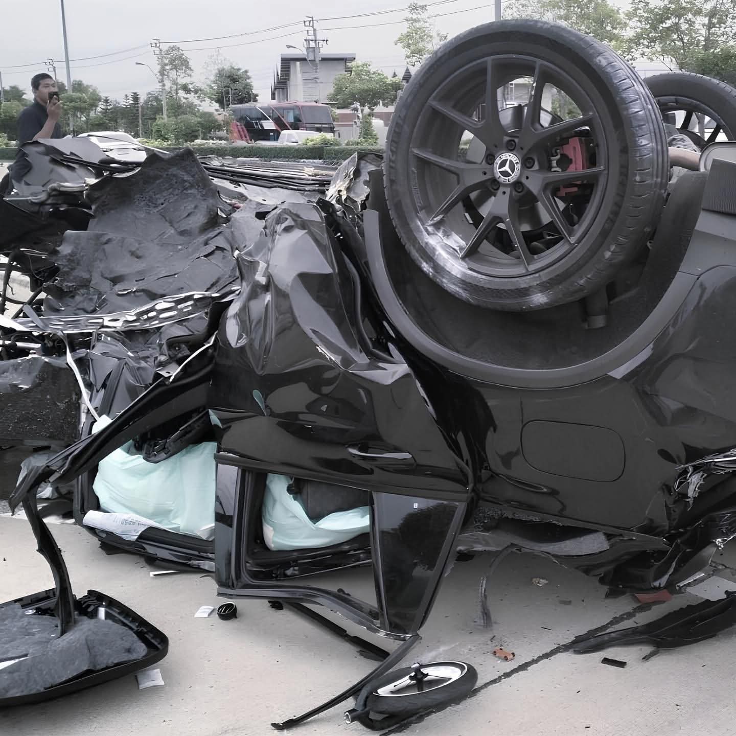 ที่เกิดเหตุบนถนนมหาวิทยาลัย พบรถยนต์เก๋งยี่ห้อฮอนด้า ซีวิค ทะเบียนกรุงเทพมหานคร เสียหลักพุ่งชนเกาะกลางถนน สภาพพังเสียหายอย่างหนัก ชิ้นส่วนและเครื่องยนต์กระจัดกระจายทั่วบริเวณ